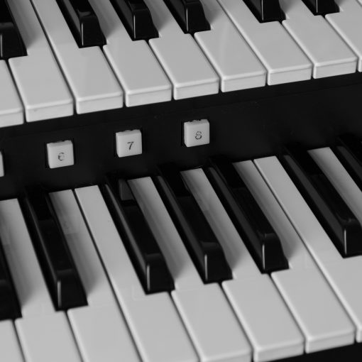 There are some larger organs with 2 keyboards of 61 notes each and a pedalboard of typically 25 or more long pedals.
